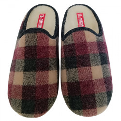 NORTEÑAS ZAPATILLAS DE CASA CHINELAS LANA VIRGEN CUADROS HOMBRE 43-147 BURDEOS NORT039