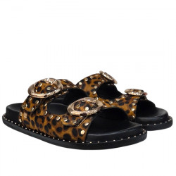 CARMELA SANDALIA PLANA BIO HEBILLAS PIEL PONY ANIMALPRINT MUJER 163056 LEOPARDO CARM088