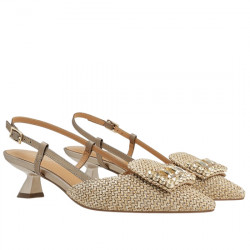 LODI SLINGBACK EFECTO RAFIA Y PIEL METALIZADA TACÓN A-CASIOPEA NATURAL / METALIZDO LODI006