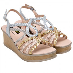 24HRS SANDALIA PIEL TRENZADA CUÑA DE MUJER 26797 COMBI METALIZADO HRS050